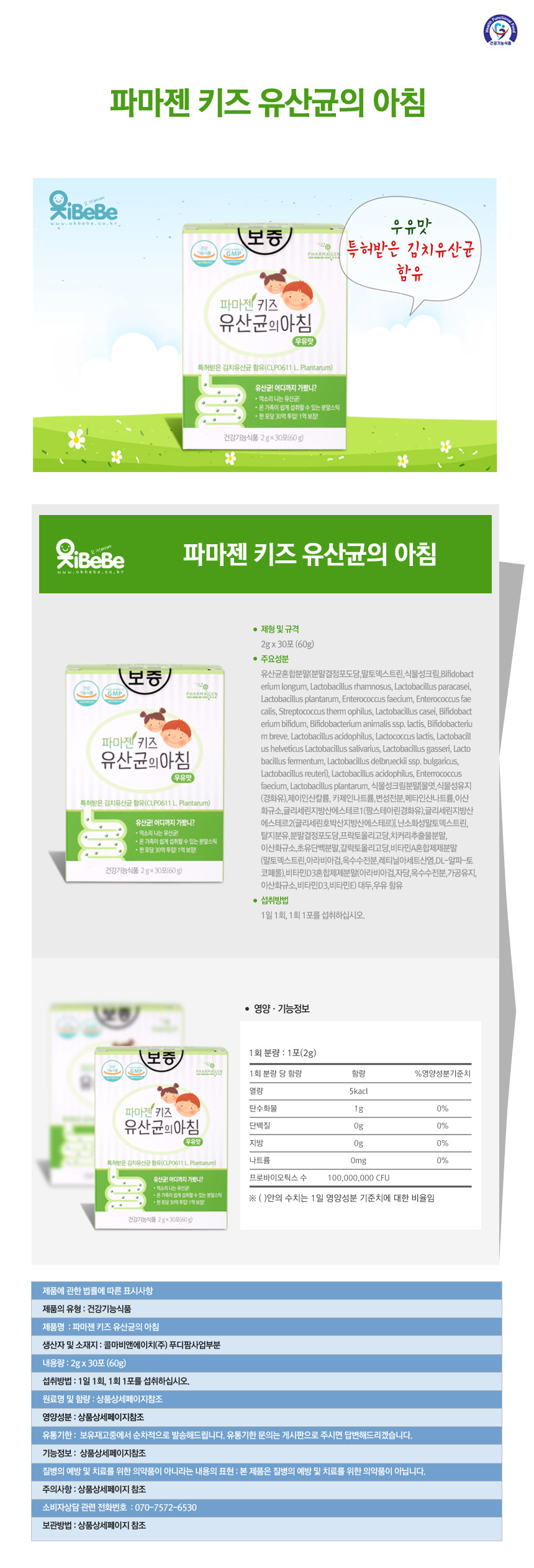파마젠 키즈 유산균의아침 우유맛 30포I어린이유산균