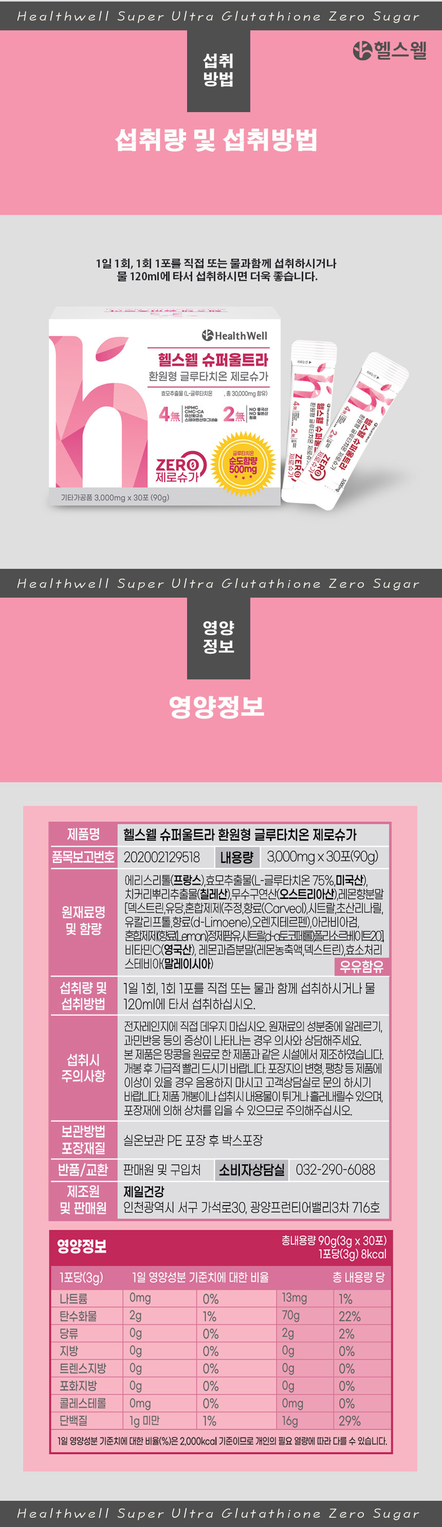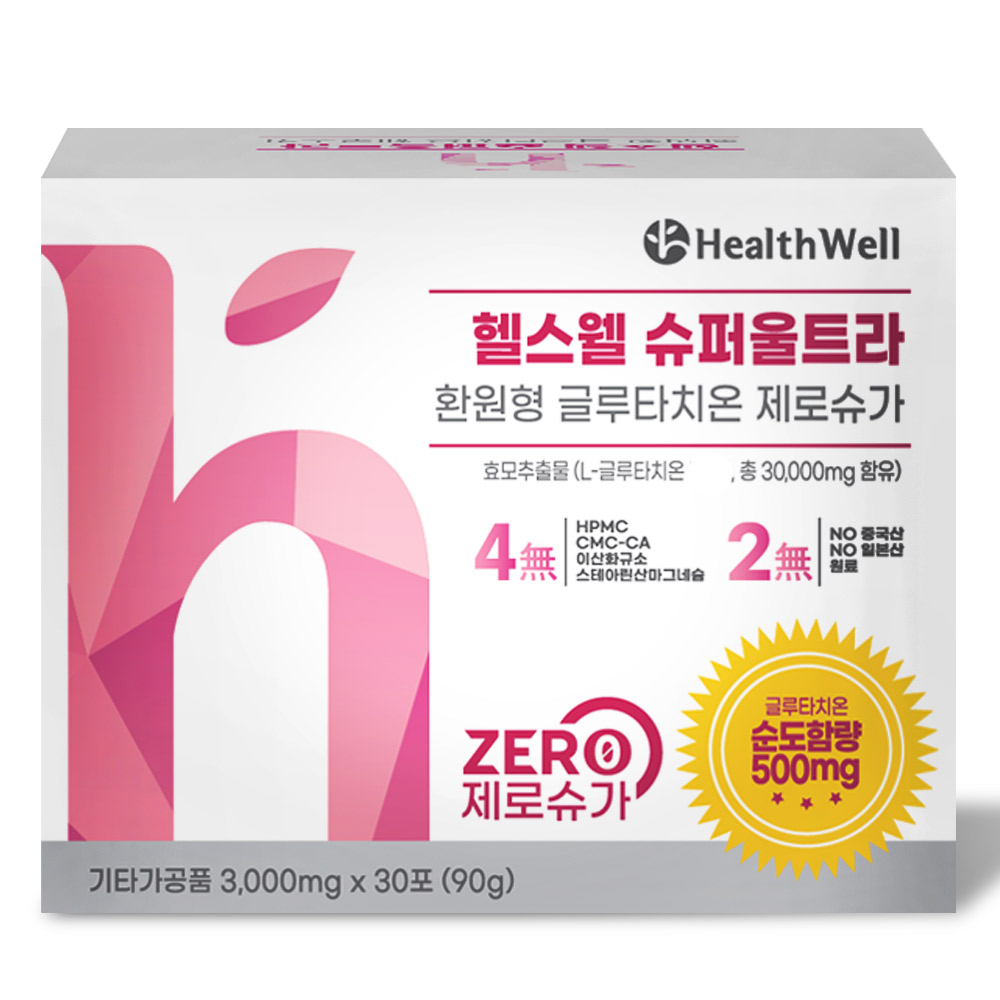 > 헬스웰 고함량 고순도 글루타치온 순도함량만 500mg 30포 환원형 제로슈가