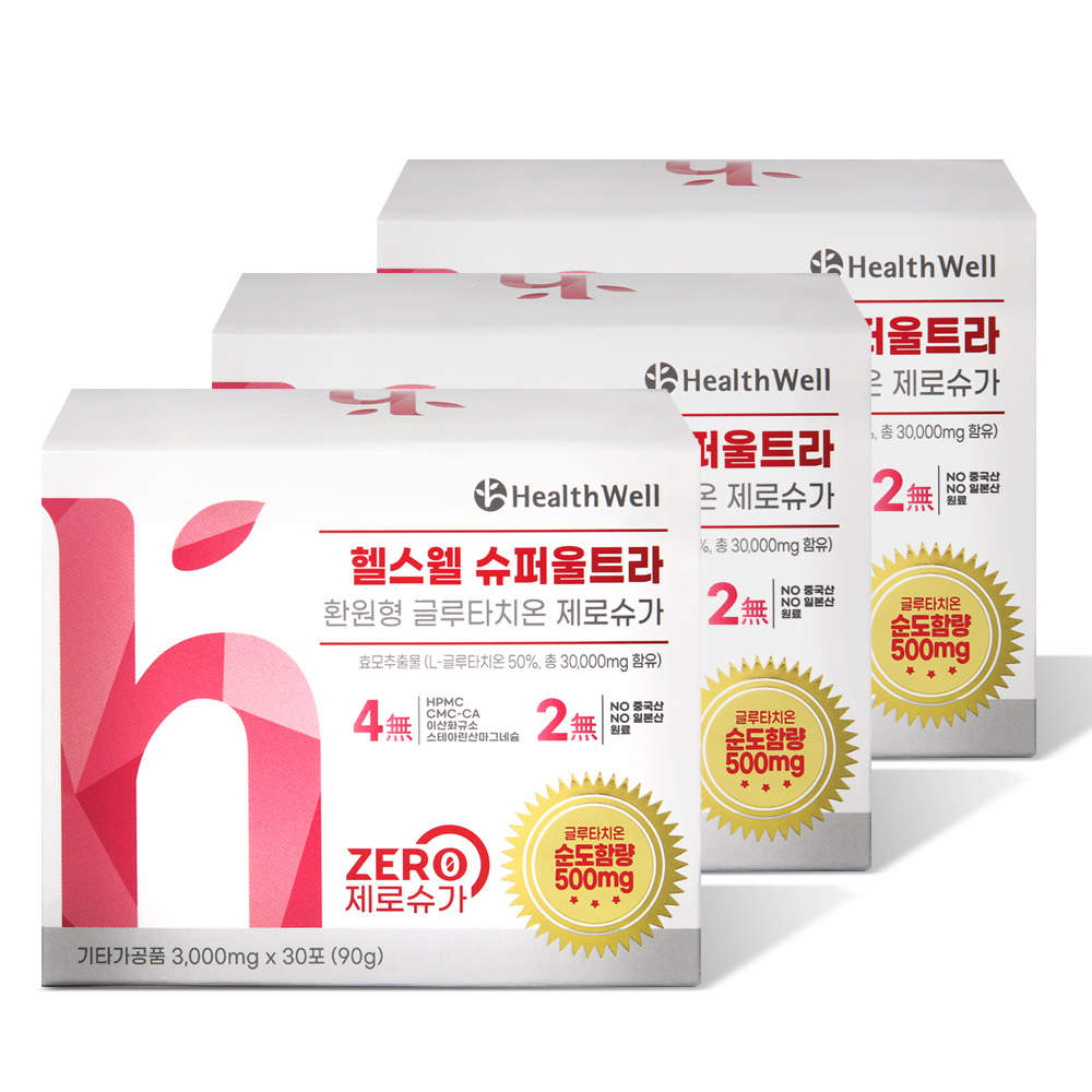 헬스웰 고함량 고순도 글루타치온 순도함량만 500mg 90포 환원형 제로슈가